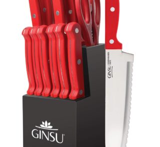 Ginsu Kiso 14-Piece Purple Knife Set with Natural Block – Dishwasher Safe and Always Sharp